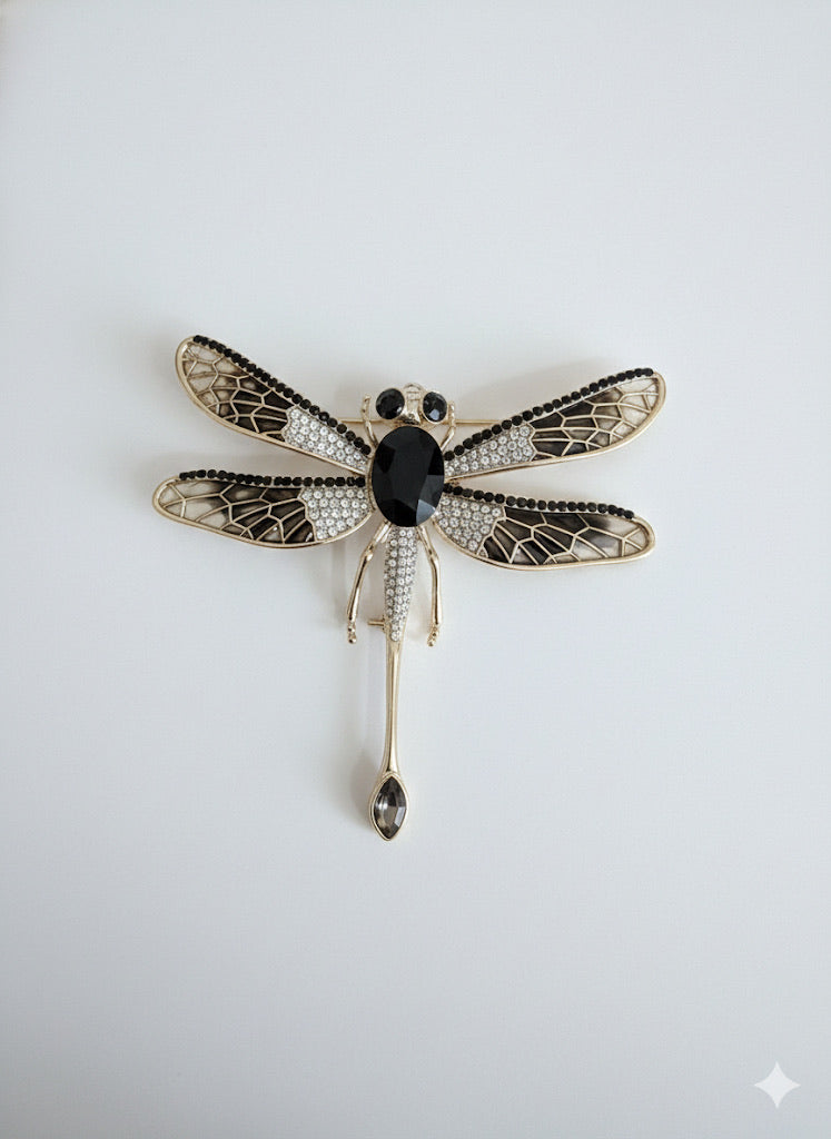 Une broche libellule élégante, délicatement sertie de cristaux, pour apporter une touche raffinée et audacieuse à n’importe quelle tenue.