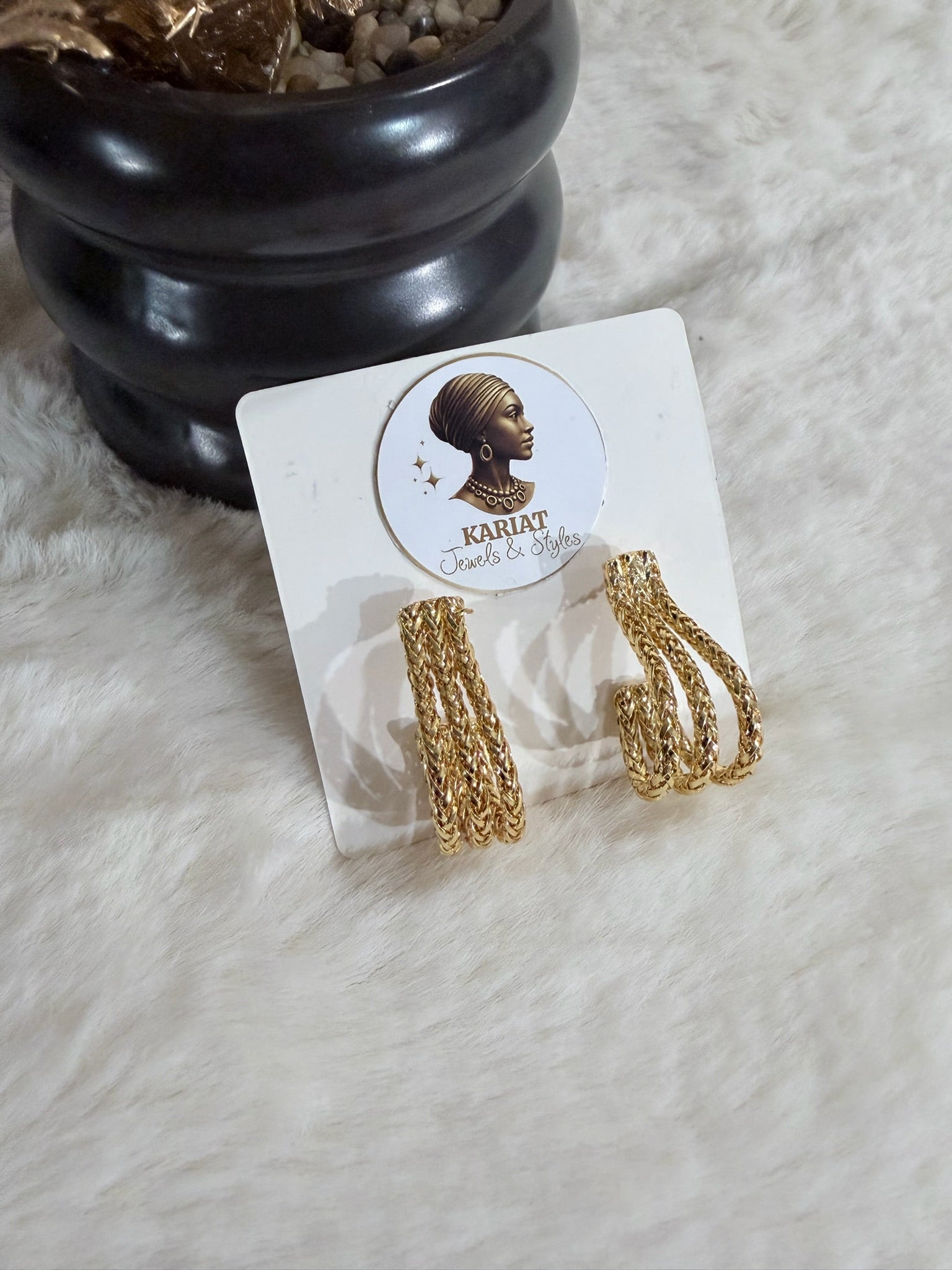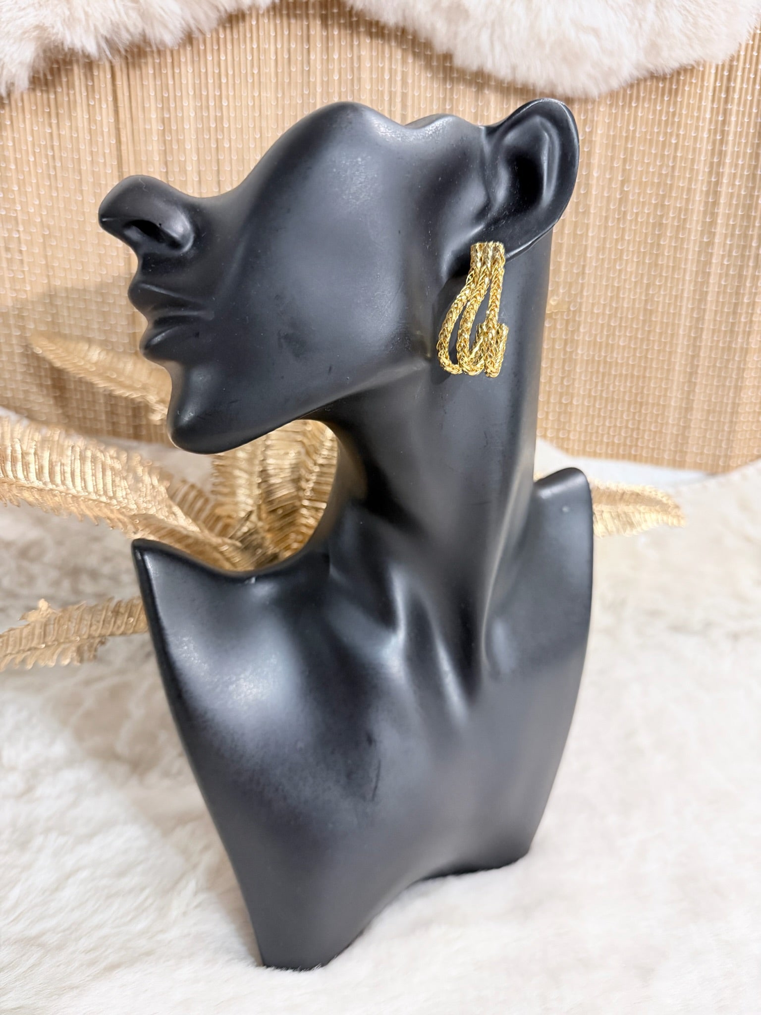 Boucles d’oreilles en acier inoxydable doré, au design tressé et élégant pour un look chic et moderne.