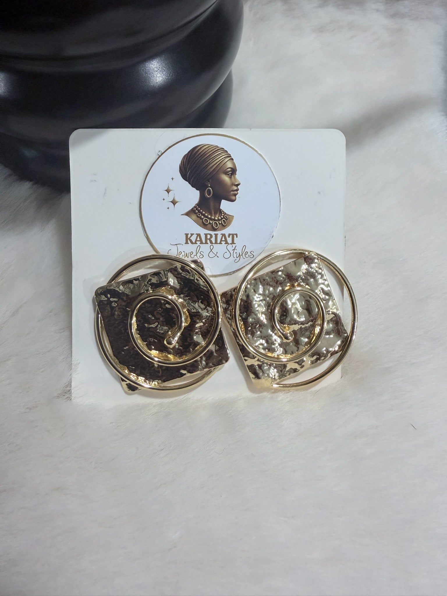 Boucles d’oreilles en acier inoxydable doré, au design martelé et spiralé pour une touche artistique et élégante.