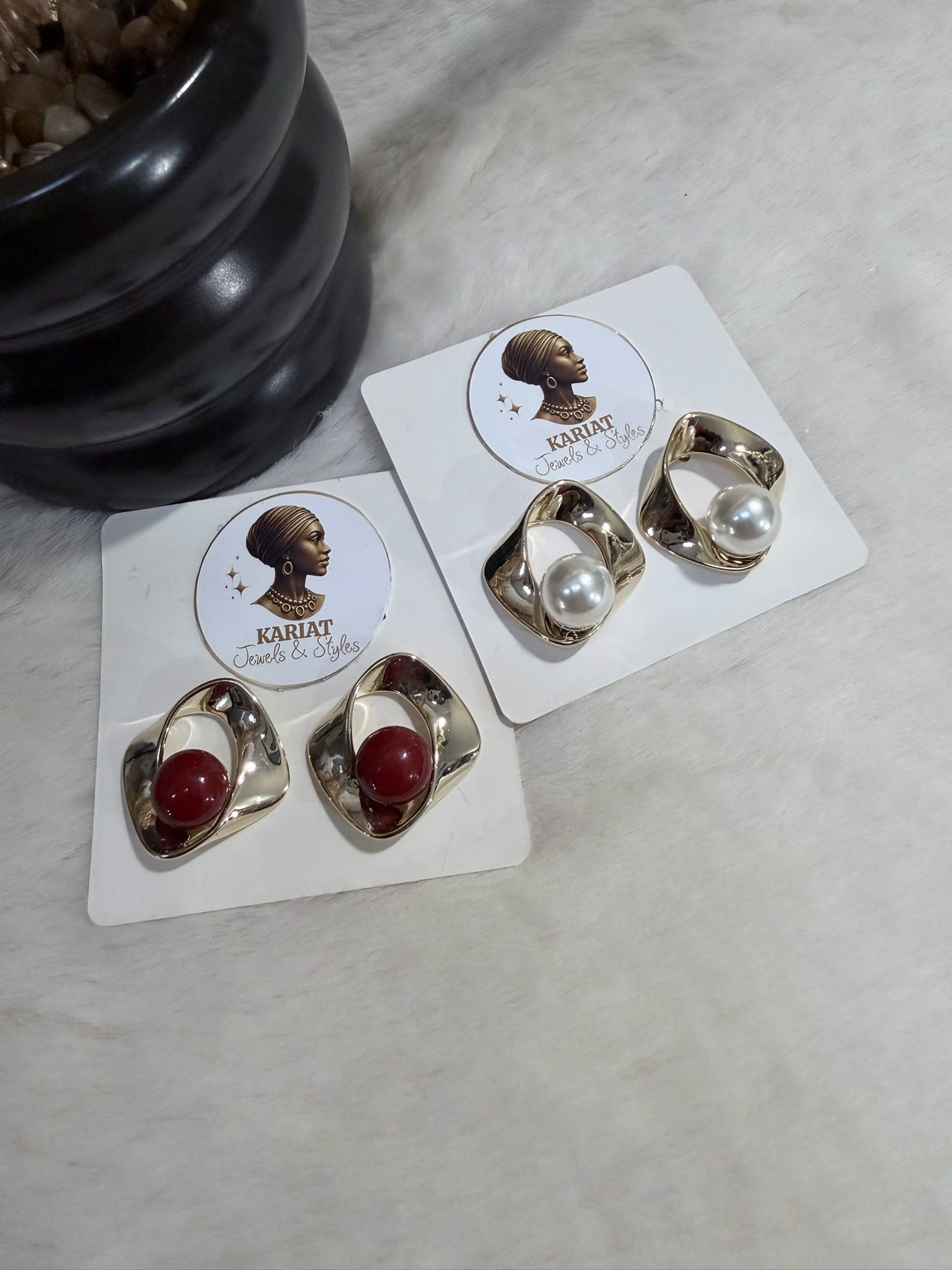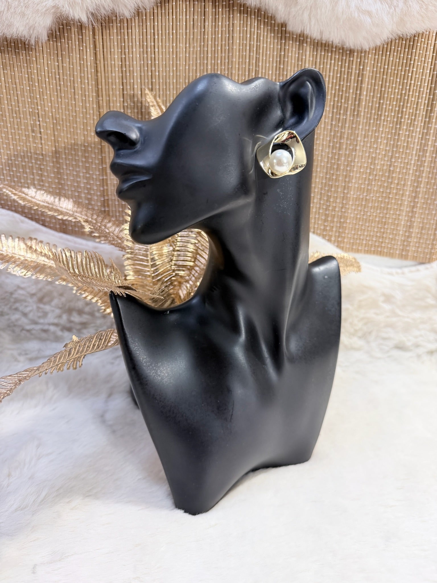 Boucles d’oreilles en acier inoxydable, au design sculptural moderne agrémenté d’une perle élégante.