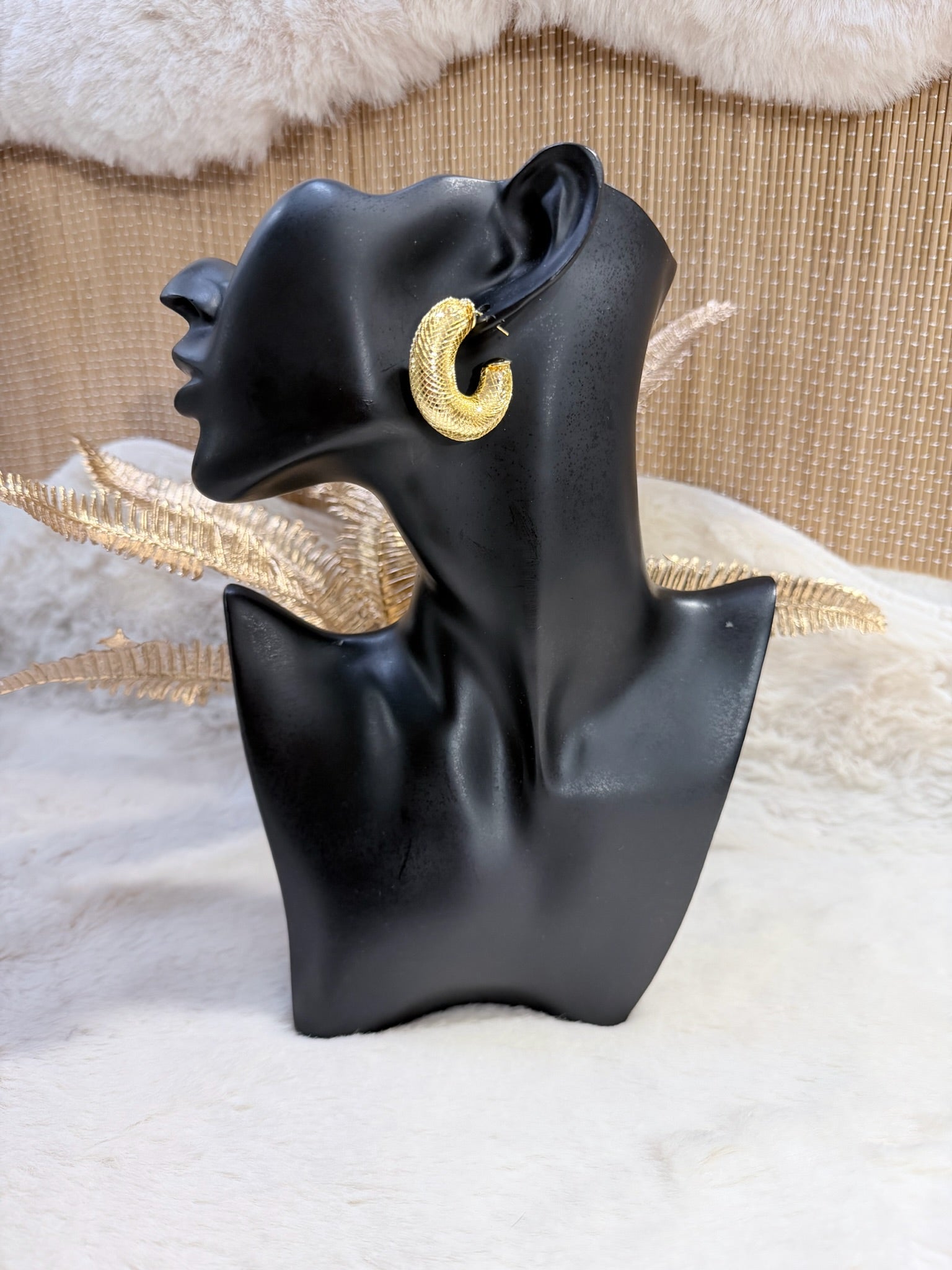 Boucles d’oreilles en acier inoxydable, au design texturé en demi-anneau pour un look bold et élégant.
