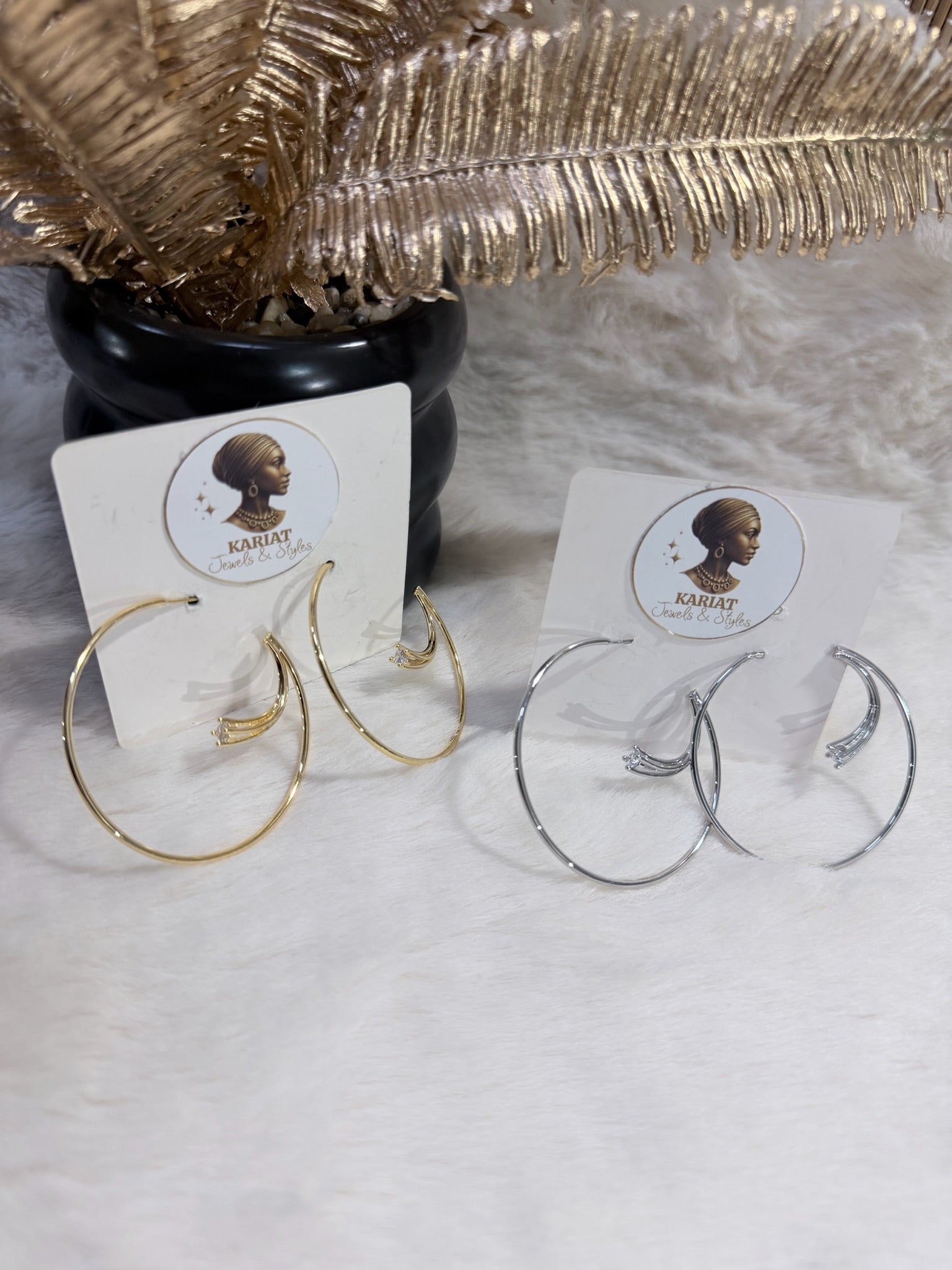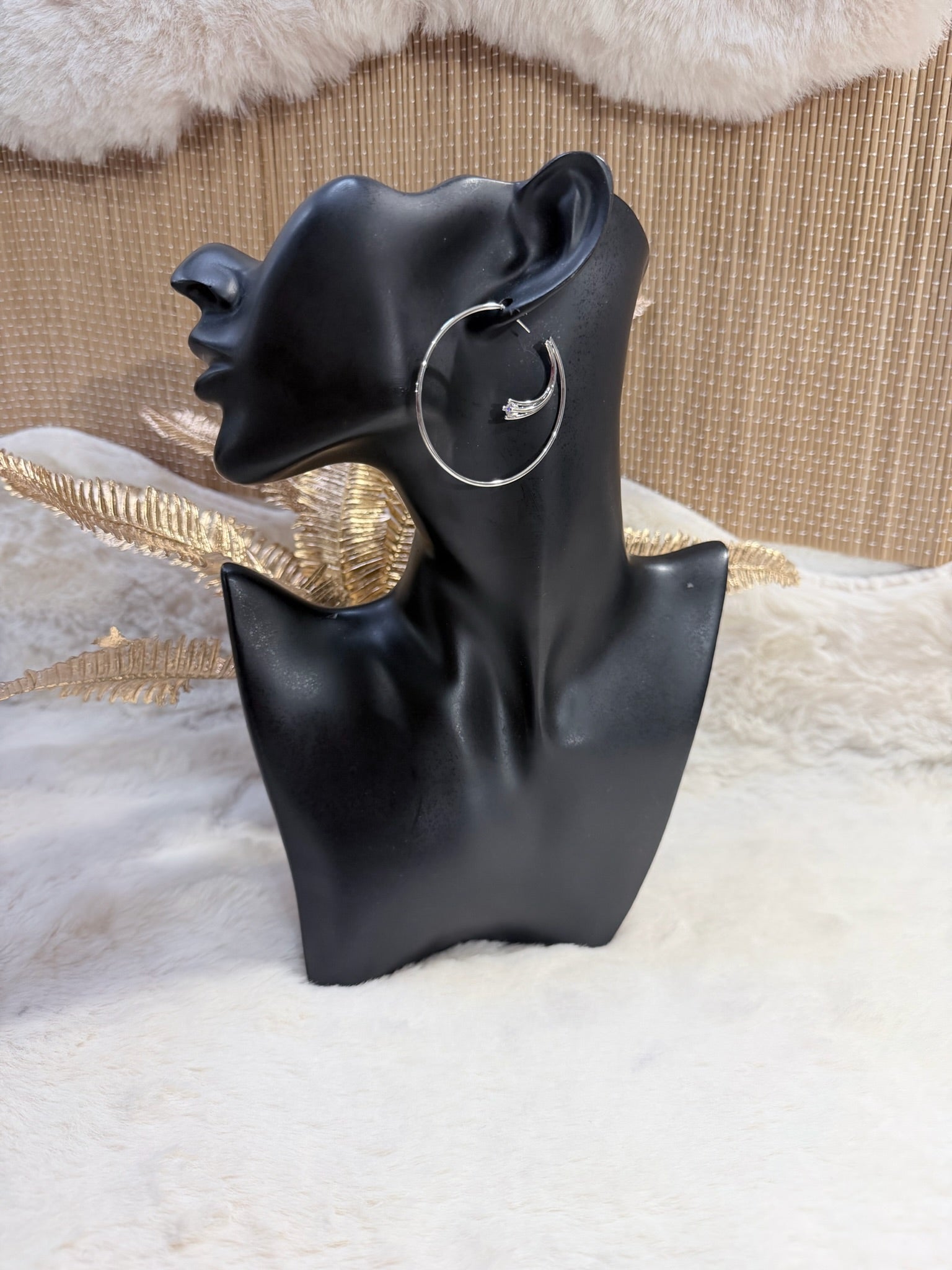 Créoles en acier inoxydable, épurées et légères, rehaussées d’un détail texturé pour une élégance discrète au quotidien.