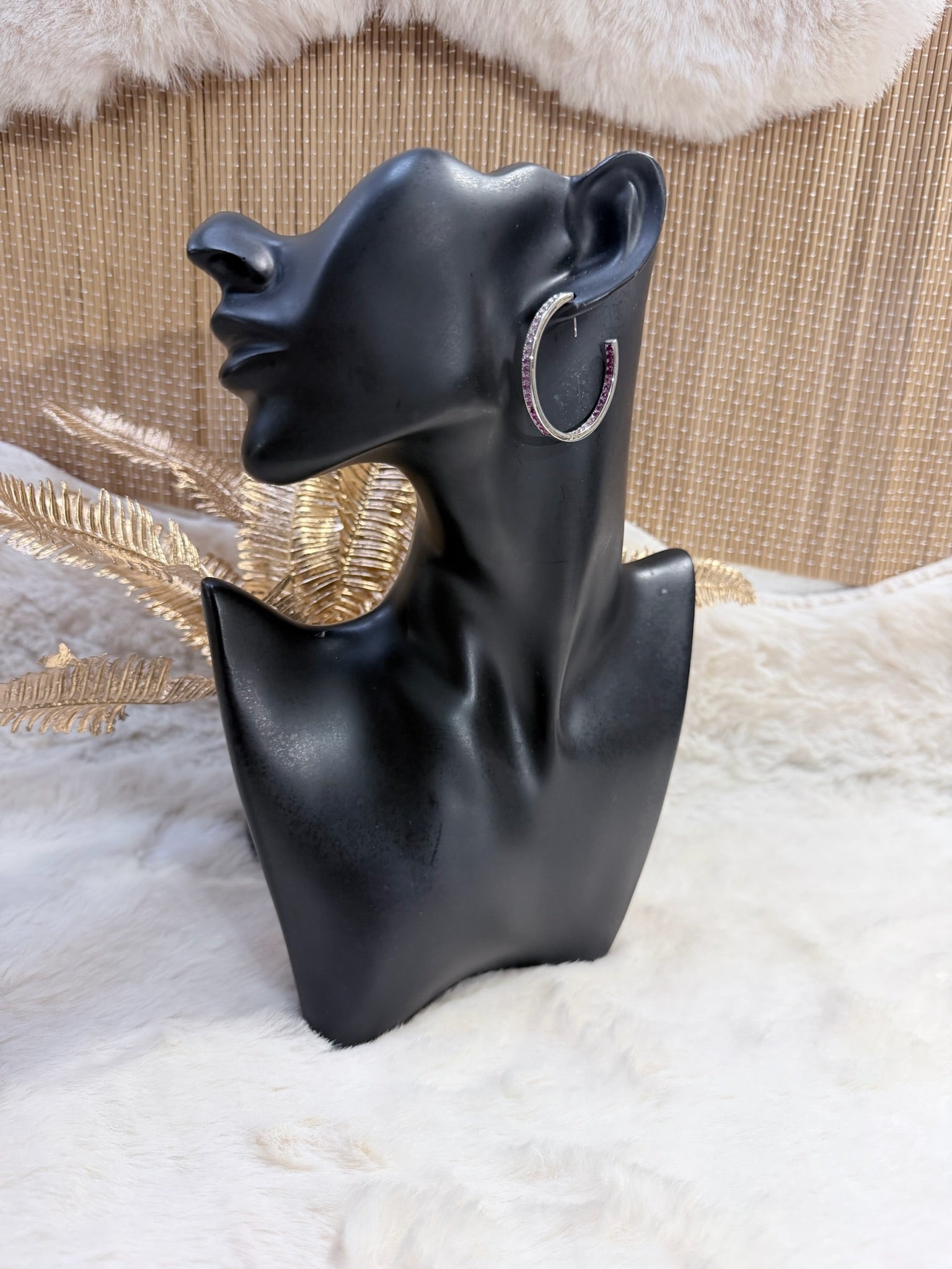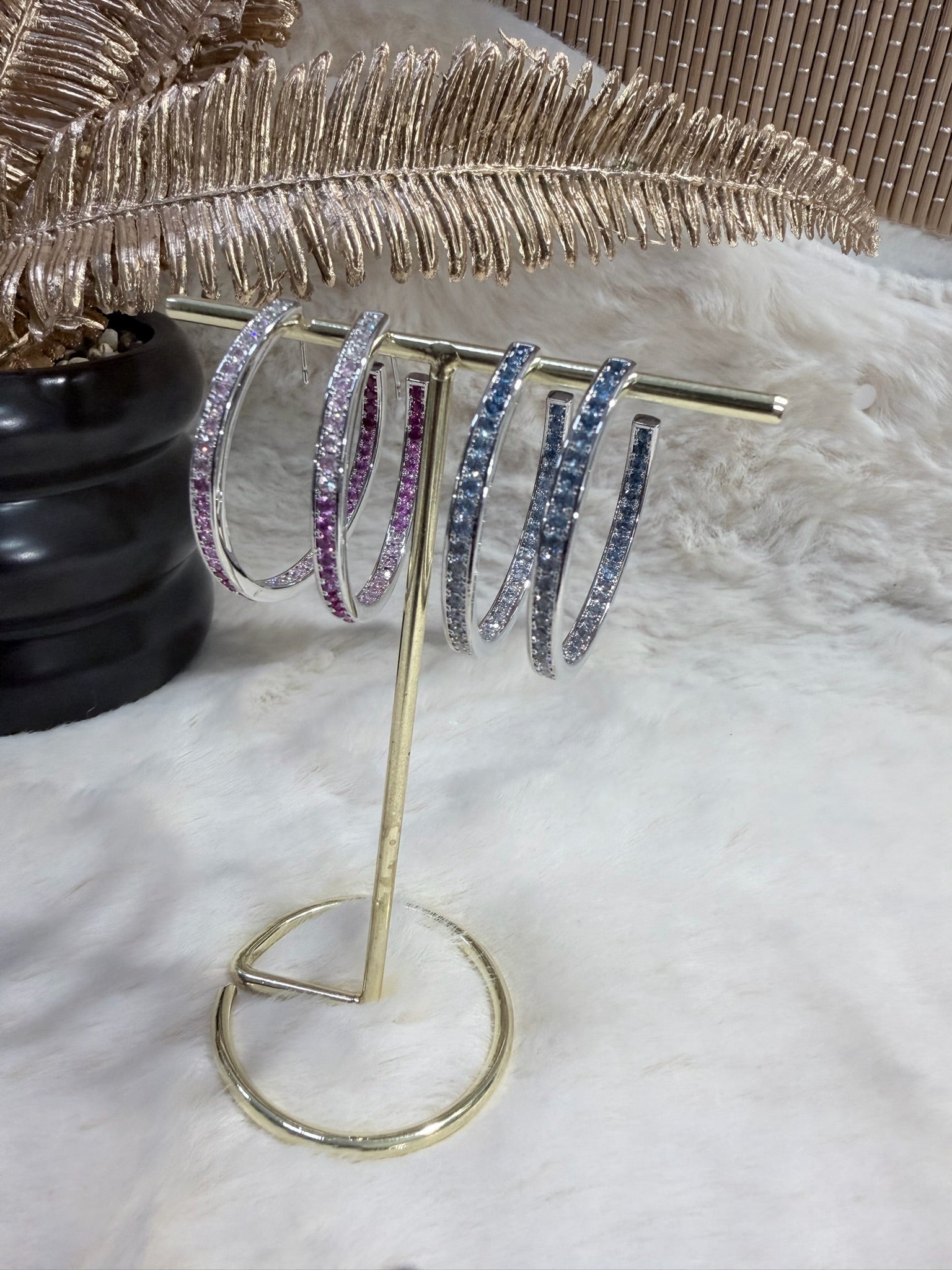 Créoles en acier inoxydable, serties de pierres colorées pour une touche lumineuse et moderne.