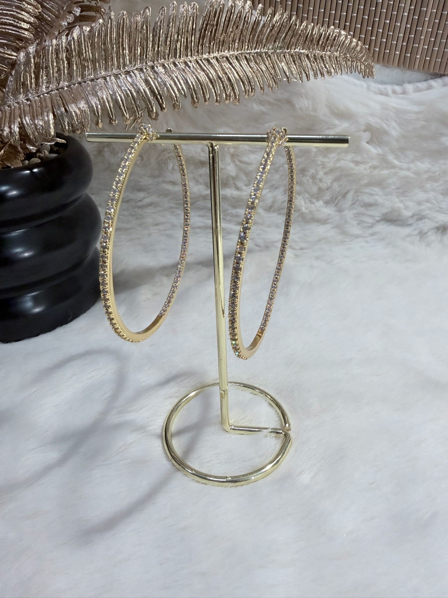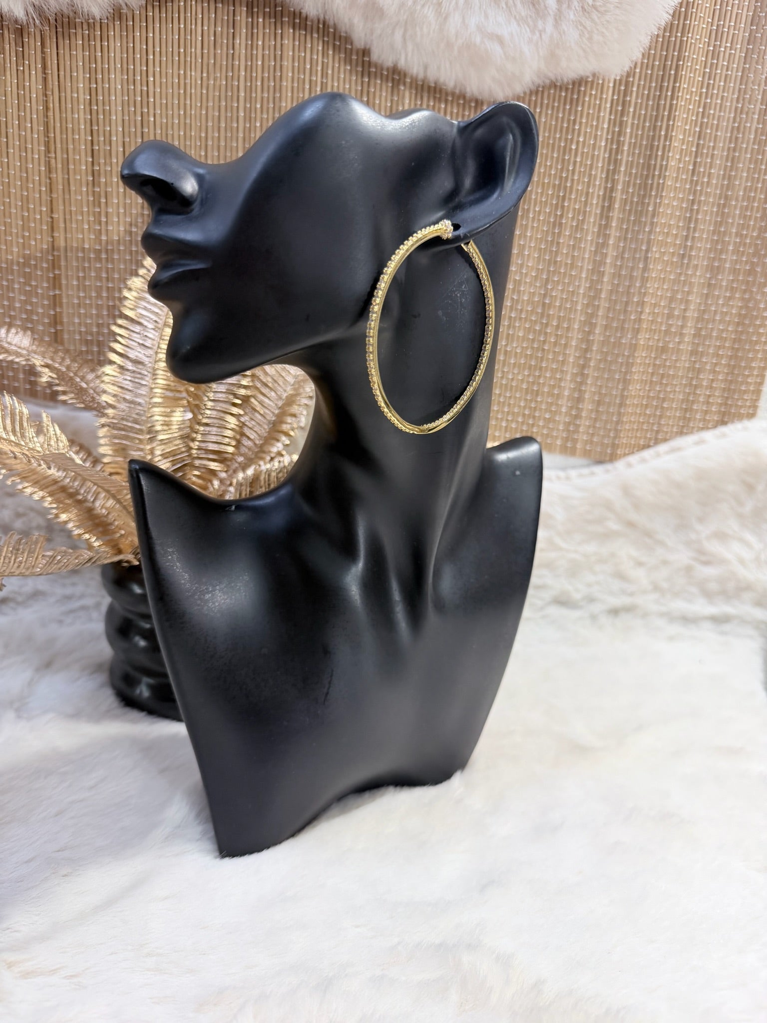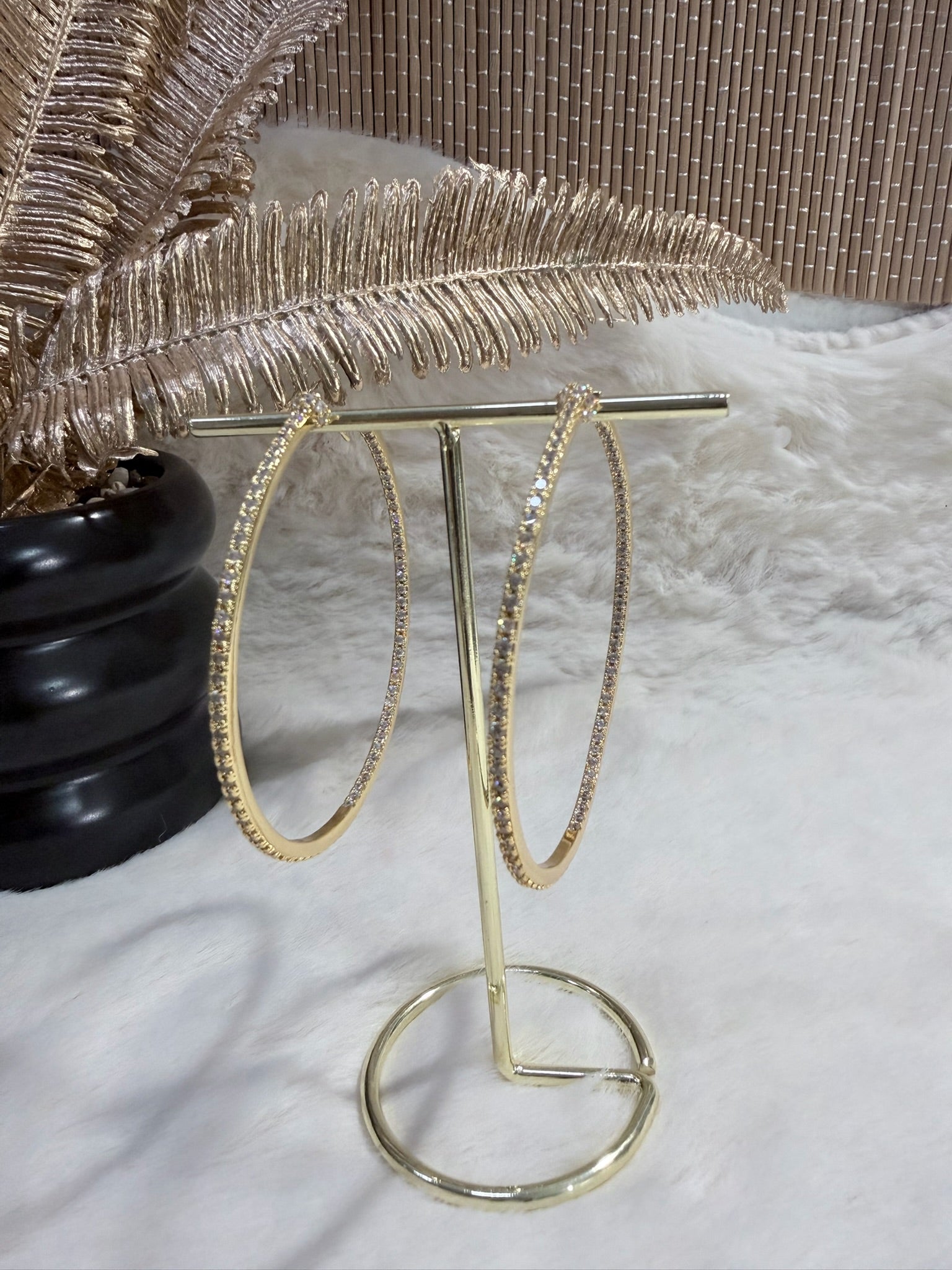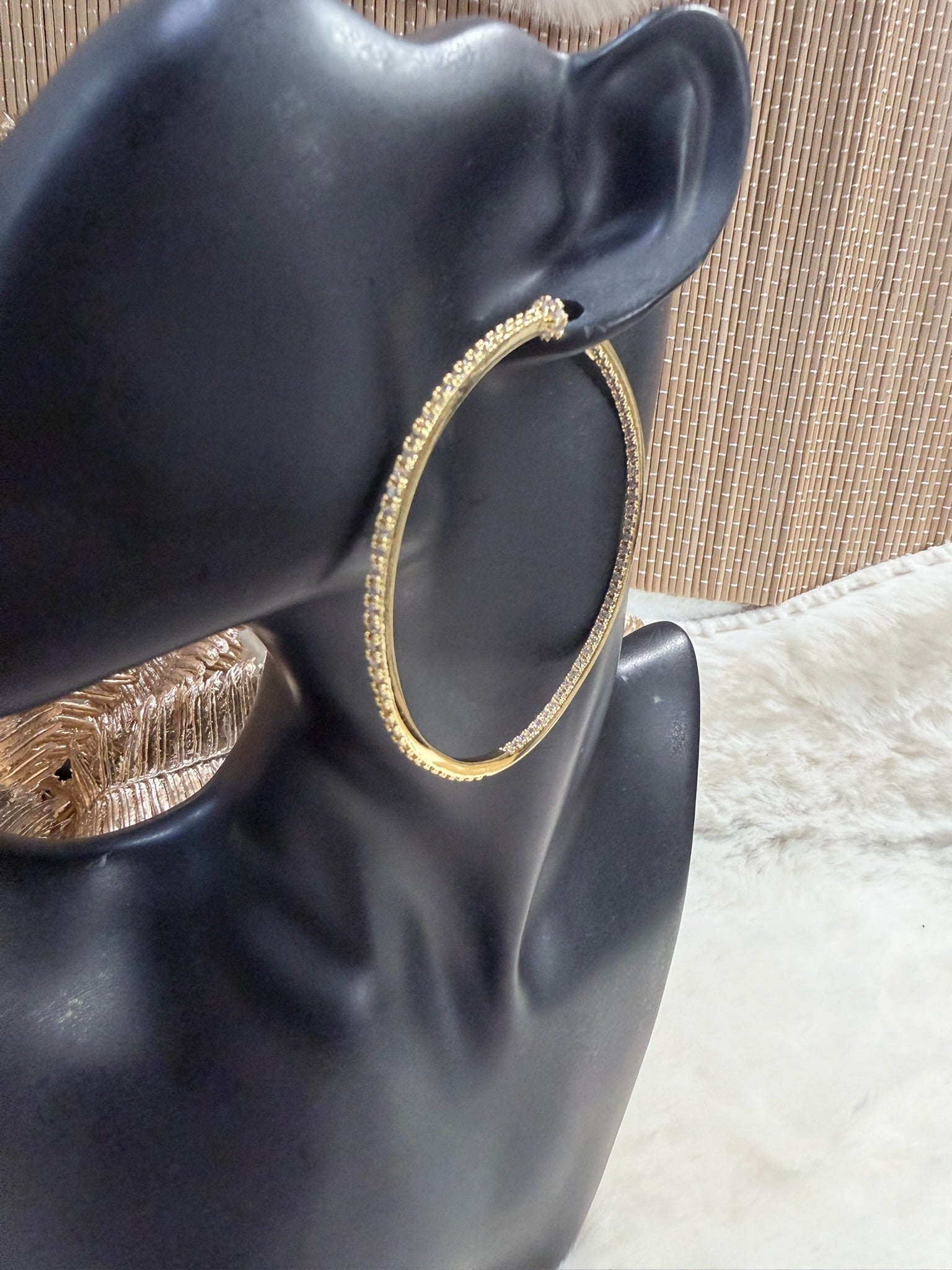 Créoles en acier inoxydable doré, entièrement pavées de zircons pour un éclat spectaculaire.